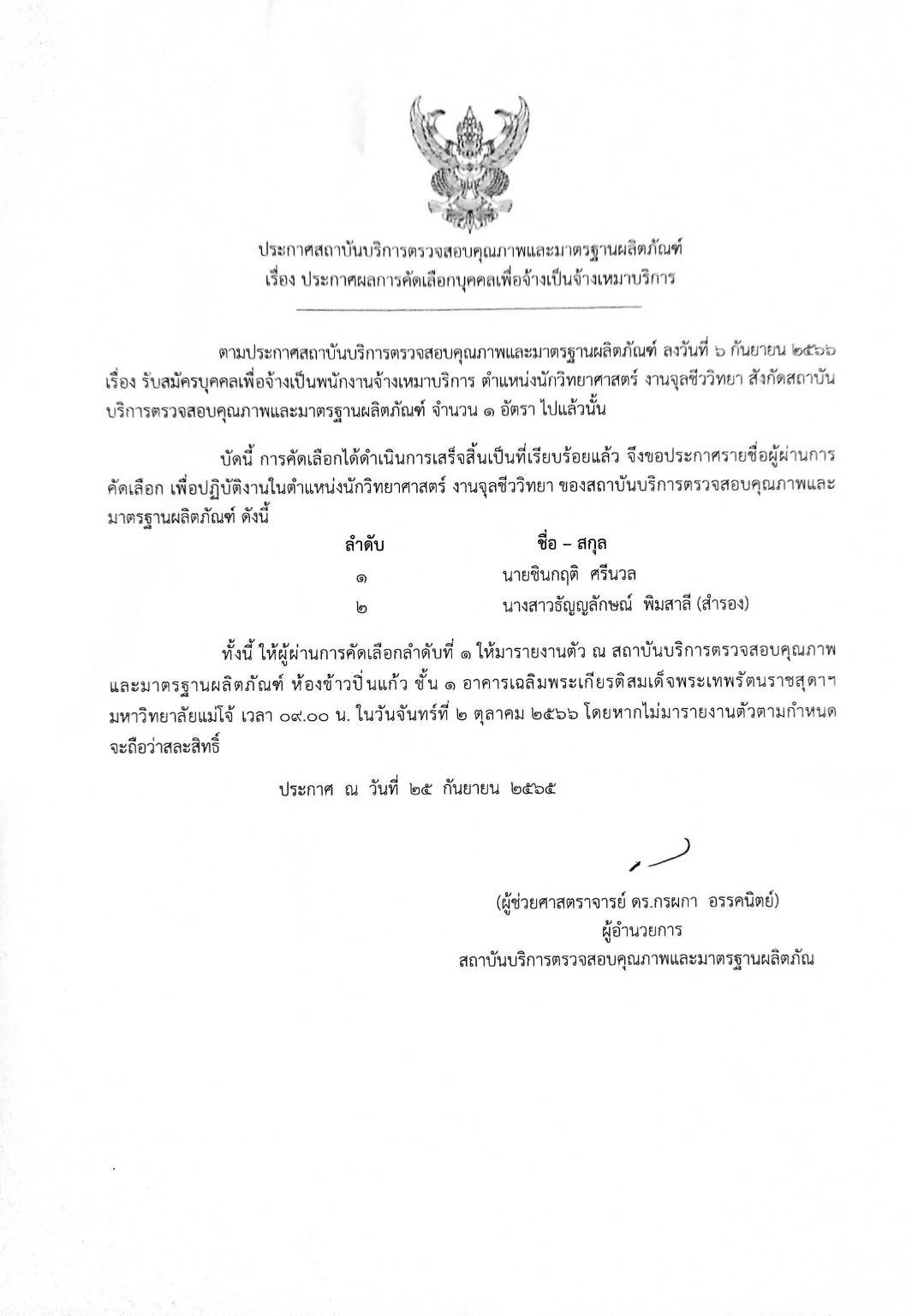 ประกาศผลการคัดเลือกนักวิทยาศาสตร์ งานจุลชีววิทยา สังกัดสถาบันบริการตรวจสอบคุณภาพและมาตรฐานผลิตภัณฑ์.jpg