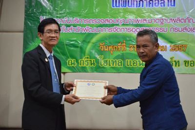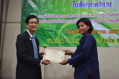 สถาบันบริการตรวจสอบคุณภาพและมาตรฐานผลิตภัณฑ์เริ่มดำเนินงานกิจกรรมสร้างศักยภาพตลาดสินค้ามาตรฐานคุณภาพเกษตรอินทรีย์ภายใต้โครงการพัฒนาความร่วมมือในระดับห่วงโซ่อุปทาน ปีงบประมาณ 2557 (ระยะที่ 2) ร่วมกับสำนักพัฒนาการจัดการอุตสาหกรรม กรมส่งเสริมอุตสาหกรรมสำนักพัฒนาการจัดการอุตสาหกรรม กรมส่งเสริมอุตสาหกรรม โดยจัดประชุมกลุ่มเกษตรกรใน 4 จังหวัด ได้แก่ จังหวัดร้อยเอ็ด จังหวัดขอนแก่น จังหวัดมหาสารคาม และจังหวัดกาฬสินธุ์ เพื่อวางแผนการดำเนินงานในปีที่ 2 และหารือแนวทางการตลาดของข้าวอินทรีย์สู่ตลาดสากล อีกทั้งยังได้มอบใบประกาศนียบัตรให้แก่สมาชิกกลุ่มเกษตรกรที่ผ่านการฝึกอบรมมาตรฐานเกษตรอินทรีย์สากลในปีที่ผ่านมา