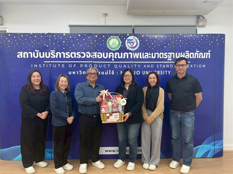 สถาบันบริการตรวจสอบคุณภาพและมาตรฐานผลิตภัณฑ์ (IQS) มหาวิทยาลัยแม่โจ้ นำโดย ผู้ช่วยศาสตราจารย์ ดร.ตะวัน ฉัตรสูงเนิน ผู้อำนวยการสถาบันฯ พร้อมด้วย ผู้ช่วยศาสตราจารย์ ดร.ฉันทนา ซูแสวงทรัพย์** รองผู้อำนวยการฝ่ายวิจัยและนวัตกรรม และ นางริมฤทัย พุทธวงค์ รองผู้อำนวยการฝ่ายบริหารและห้องปฏิบัติการ รวมทั้งหัวหน้าฝ่ายและทีมงาน ได้เข้าพบเพื่อสวัสดีปีใหม่และส่งความปรารถนาดีแก่ผู้บริหารและหน่วยงานเครือข่ายที่มีความร่วมมือกันอย่างใกล้ชิดอย่างต่อเนื่อง